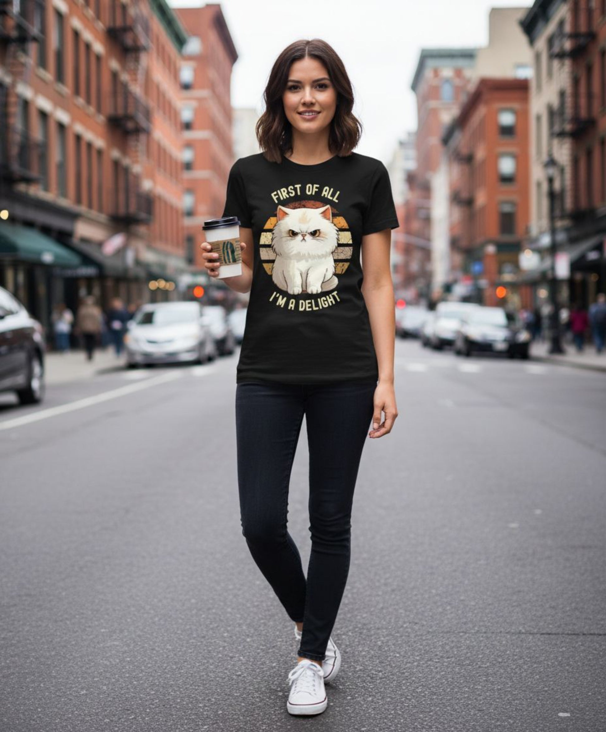 Perfect for cat lovers who enjoy witty designs, this tee is a fun way to express your vibe and show off your love for cats — because, let’s face it, you are a delight. 🐾😸